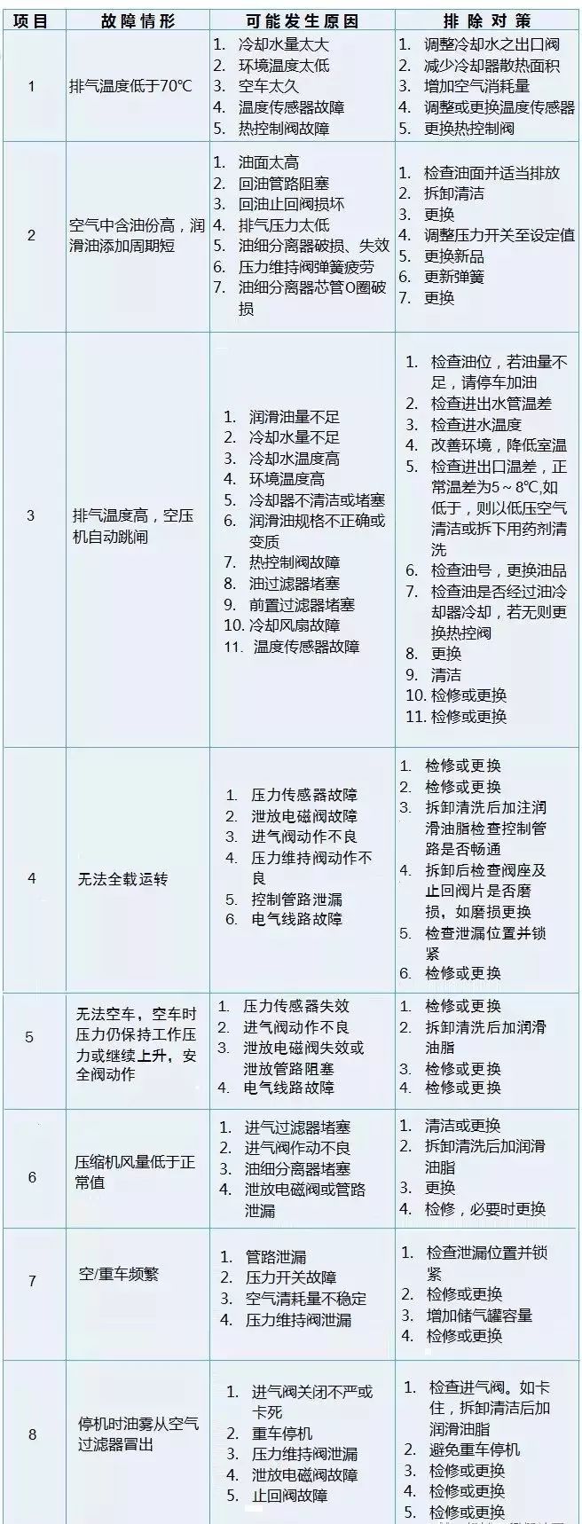如图4—4所示,工作腔喷油的单级螺杆式空气压缩机,汽缸4为整体式,端盖2和5中没有漩动轴承·本结构的特点是驱动轴通过一对增速齿轮6与8驱动阳螺杆,再由阳螺杆带动阴螺杆转动·喷油螺杆压缩机由油进行工作腔内冷却,单级压力比可达7~8.并且排气温度小于l40℃,如遇到温度不正常详见:螺杆空压机排气温度高报警。