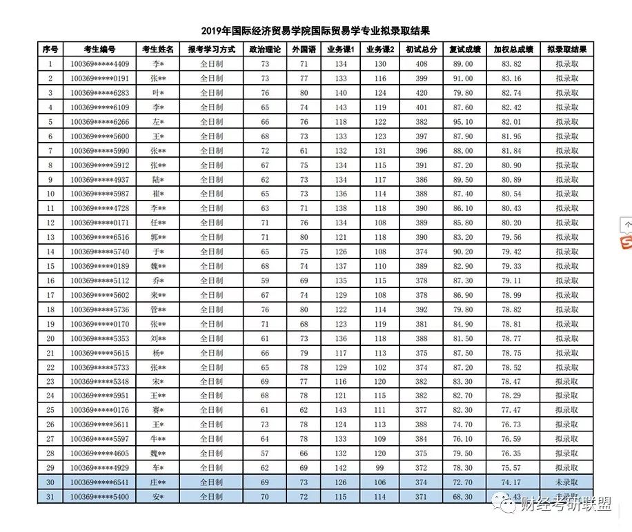 对外经济贸易大学2019年硕士研究生拟录取结果