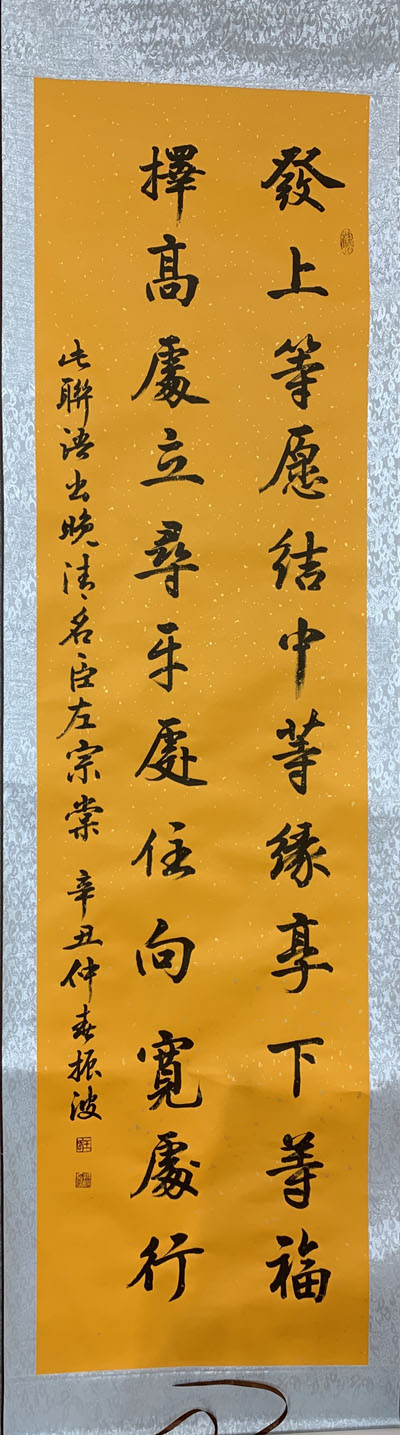 王振波先生自幼浸润于翰墨之中,遍习诸家名帖,博采众长,深受二王及赵体影响。硬软笔均有造诣,尤擅行草, 融合自然、行笔流畅、其书法风格飘逸洒脱,秀丽脱俗,给人以强大的视觉冲击强烈的美学感受。其作品多次在各级别刊物上发表,也被许多党政机关及海内外各界名流收藏。
