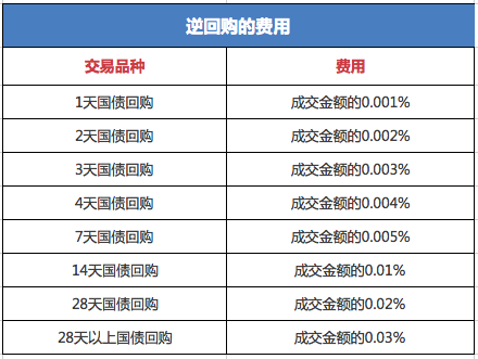 逆回购的费用是按照成交额来计算,按天计费,不同逆回购品种费率不同。如下表所示: