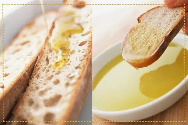 涂面包:中国人的早餐向来是一大问题,可用橄榄油来改善。将买来的切片面包在多士炉或微波炉内烤2-3分钟,取出,直接将橄榄油涂抹在上面,味道奇香,儿童很容易接受这种吃法。另外一种吃法,是将西红柿去籽,切成极小的丁,与橄榄油拌在一起,可加盐,也可不加,将这个橄榄油西红柿酱涂抹在烤好面包片上,既有营养,又好吃。