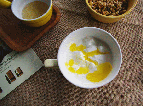 晚餐后:亚麻籽油可以放到酸奶里搅拌均匀后即可食用。大部分上班族晚餐会在外边吃,回家后又比较晚,正好可以喝一杯酸奶,促进消化哦~