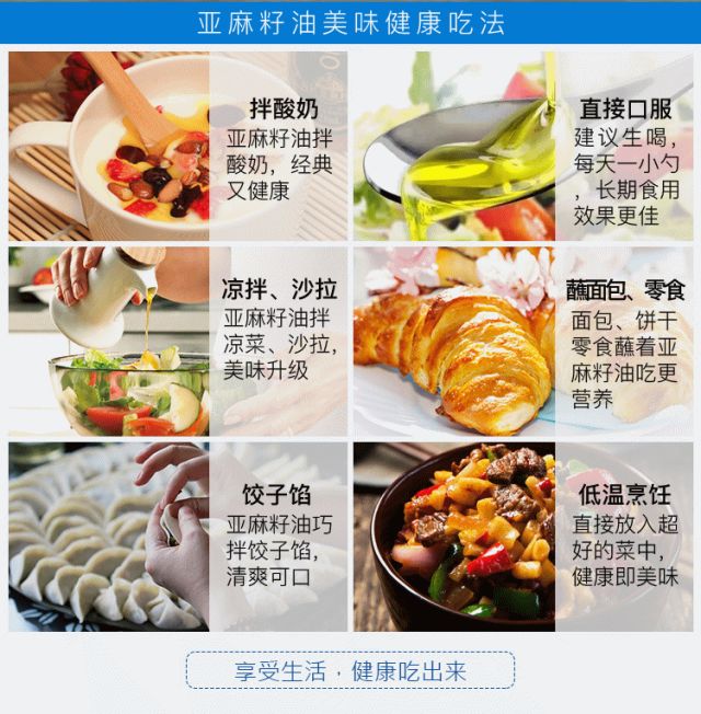 虽然越来越多的人热衷于食用健康的亚麻籽油,但很多人却在吃法上犯了难,平常很少做饭,上班时喝油又不大方便,实在不知道怎么吃才好。今天小编就给大家分享几个“吃油秘方”,保准让您大开眼界!