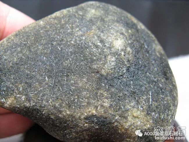 赌石实战里一块表面全是细长形状的玻璃似冰渣渣(苍蝇翅) 的赌石