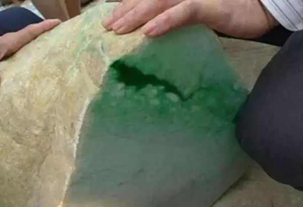 决定切翡翠原石了,但是拿不准下刀位置怎么办?这个时候,可以先从翡翠原石表面,有表现的部分或者延伸出来的某一端,薄薄的切一片下来观察颜色、水头、裂痕。