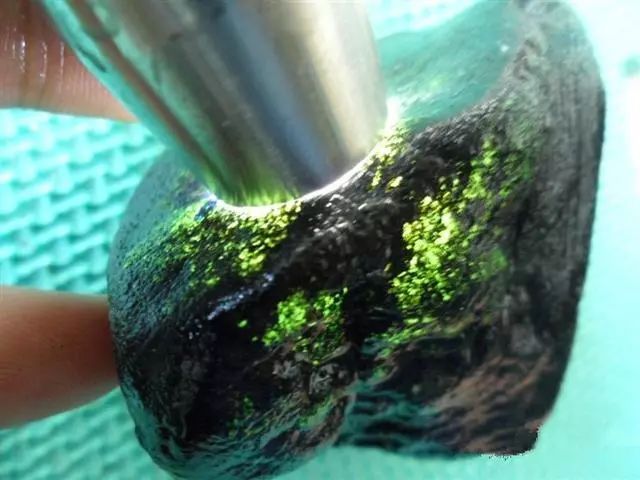 在市场上经常会看到,那些缅甸翠友,有空就拿个小刷子对着赌石一直在那里刷,他们可不是闲着没事干,只是擦出来再看看哪里有表现,好下手!