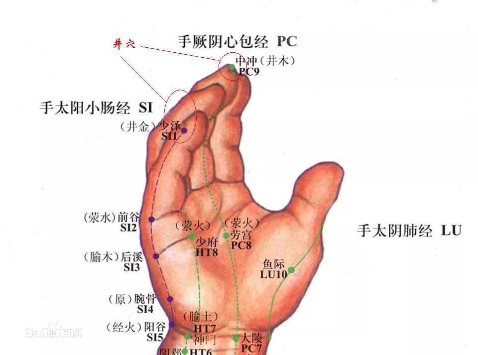 总结一下,如果需要使用泻法,单一次使用--井穴,技法一般就是点刺放血,长时间使用---荥穴,技法为针刺泻法。