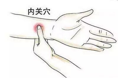 方法4:按压内关穴(前臂掌侧,腕横纹上2寸)