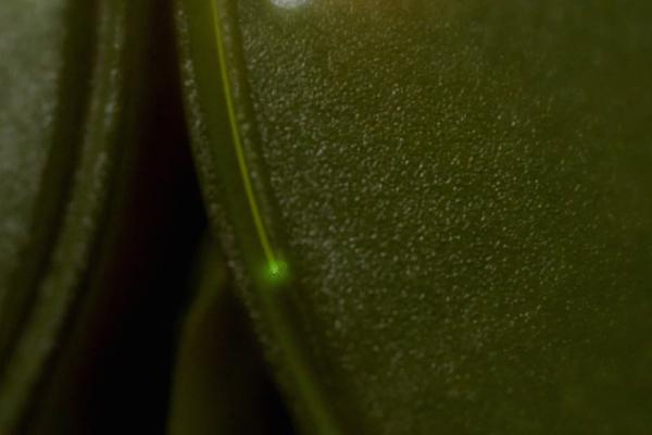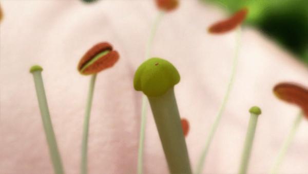 一粒花粉落在百合花柱头上,模拟图。