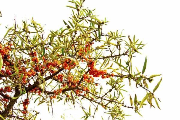 沙棘的果实具有鲜艳的红色和橘黄色