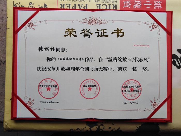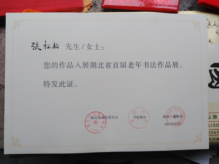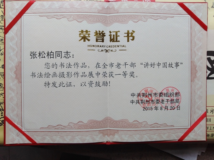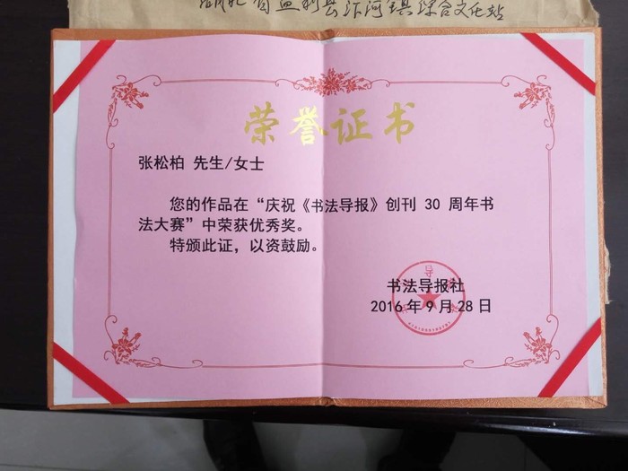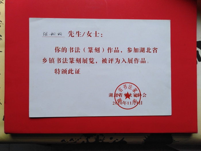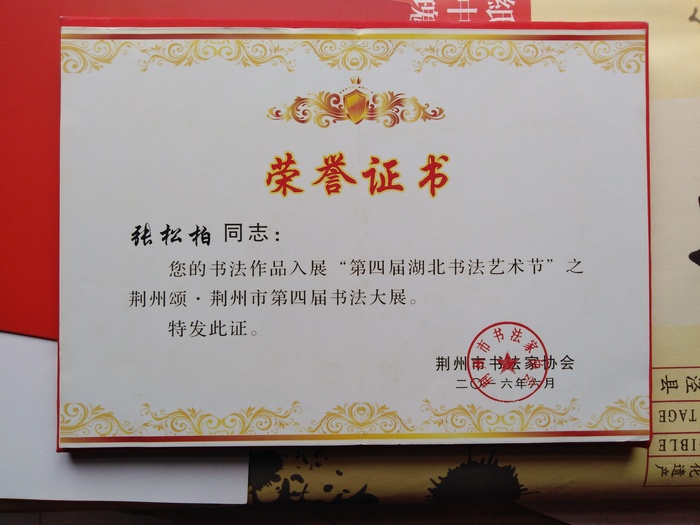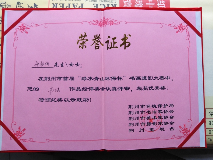 书法作品荣获“屈原杯海内外书画艺术大奖赛·优秀奖(1988年)”、“牡丹杯国际书画艺术大奖赛·鼓励奖(1988年)”、“首届荆州市绿水青山杯书画大赛·优秀奖”、“荆州市讲好中国故事书画摄影作品展·一等奖”、“庆祝《书法导报》创刊三十周年书法大赛优秀奖”、“首届《道德经》全国书法作品现场大赛·二等奖”,入展湖北省首届乡镇书法篆刻作品展、湖北省首届老年书法作品展、荆州市第四届书法作品大展、荆州市第二届书法临贴展及本县多次展览,在《书法导报》、《书画天地》、《书法报》等主要专业媒体上刊发,先后两次在央视书画频道迎新春书画作品展播节目中播出。