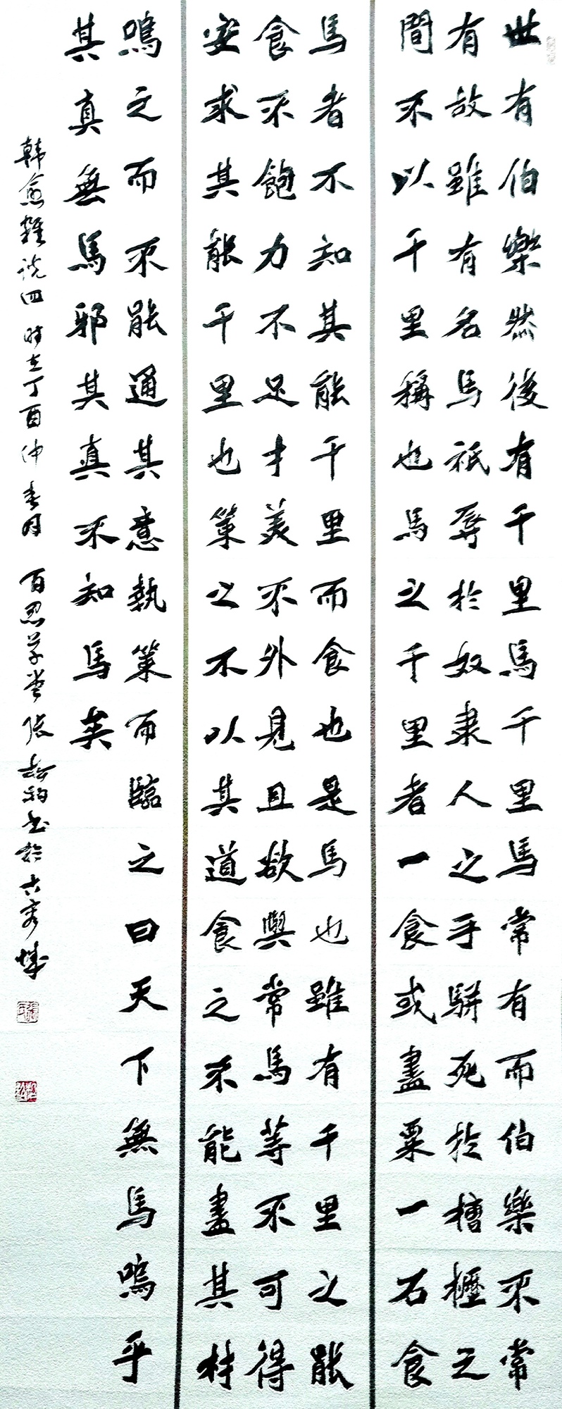 张松柏的书法艺术尤以魏碑见长,通过长期的临习钻研,形成了自己独特的风格。观其作品风骨高古、点画峻拔、气势雄强、劲健潇洒、结构天成、挥洒自如,给人以酣畅淋漓与魏碑十美的感受。张松柏虽已从工作岗位上退下来,仍从事书法创研活动,锲而不舍继续在艺海扬帆。