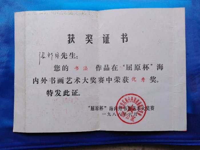 诗歌作品曾在全国大赛中多次获奖,上世纪九十年代初个人传略入编《中国当代文艺家辞典》。