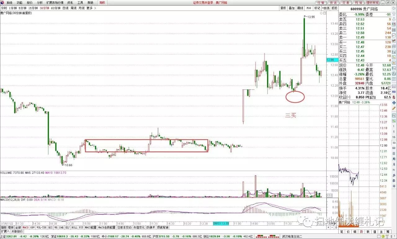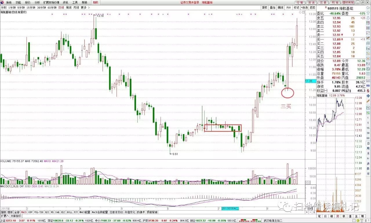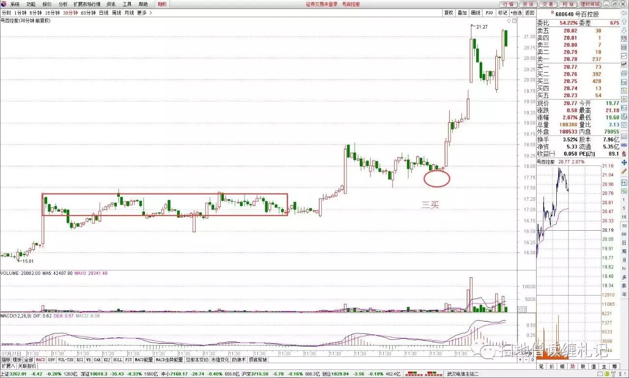 用数字来说明这种模式成功的概率并不是要打击这种模式,而是要指出这个模式的“坑”,为什么会这样?其根本原因就在于三买的机会产生与市场环境有着密切的关系,从上面的数字也可以看到,周一市场大涨的时候,三买票的数量明显是多的,而其后三天则随着市场的变化跟着变化。虽然今天没时间来统计,但今天的三买票的数量一定不会高,因为今天的市场环境就是如此。