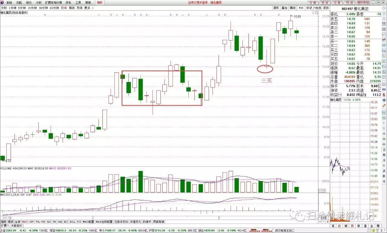 其中雅化集团的三买是上周五出现的,周二的上涨是该三买后上涨的延续。