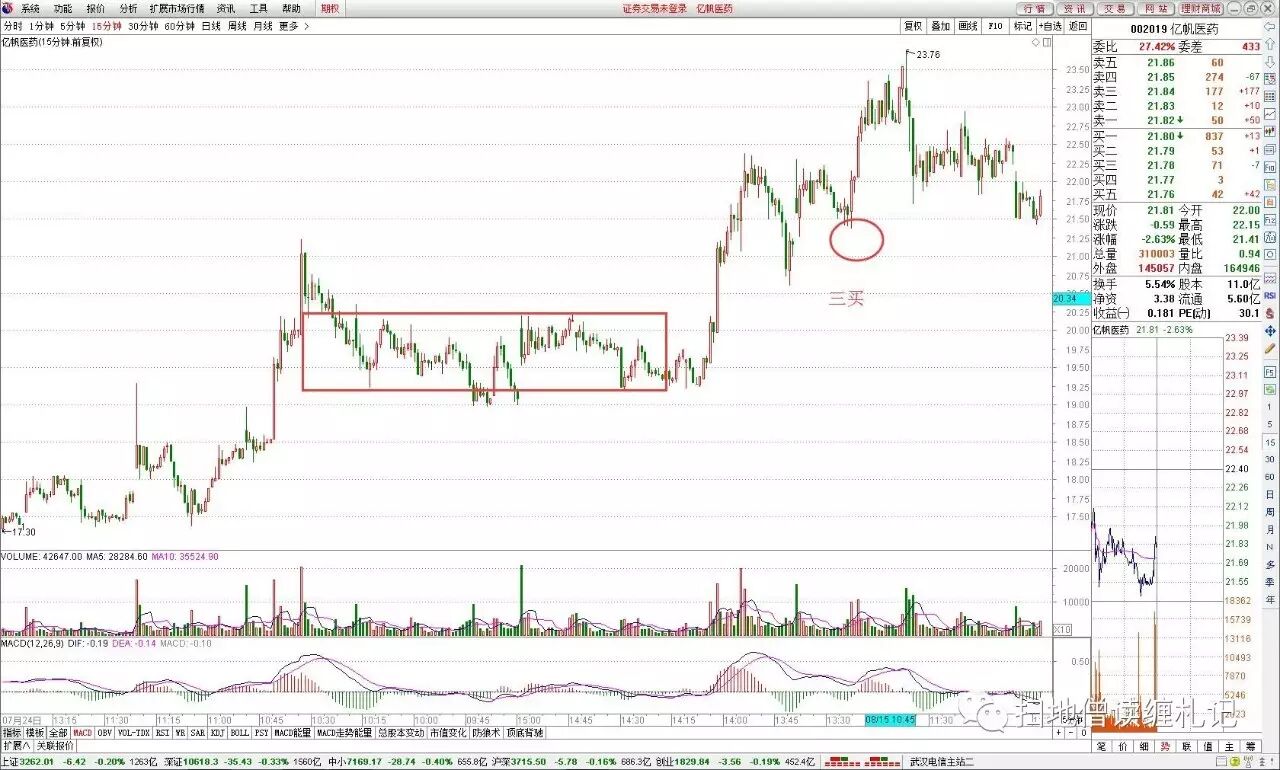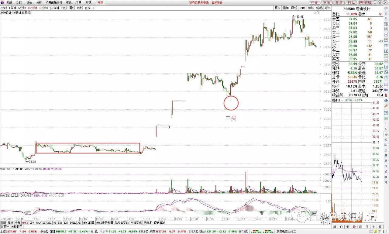 所以,在做三买的模式时,必须要考虑市场环境的变化,而市场环境的变化,级别太小,则持续性有问题,因此就要研究市场的稍大一点级别的走势,只有当市场稍大一点级别的走势非常健康时,这时候的成功率自然会提升。要么就是把个股的级别变大,也就是说三买的级别放大,这样抗市场环境的力度也会变大,不至于轻松地被市场ED了。