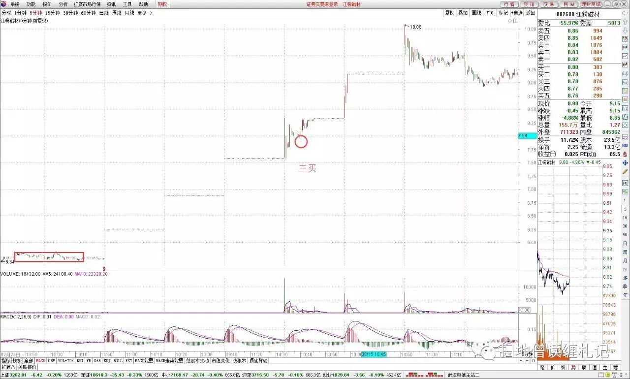 江粉磁材的三买级别很小,可操作性不是很高。