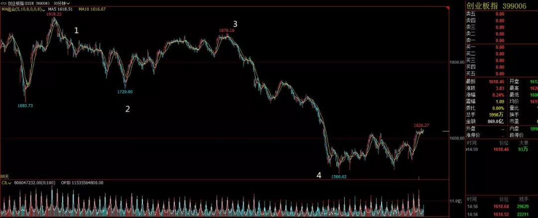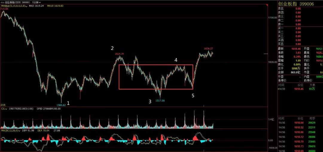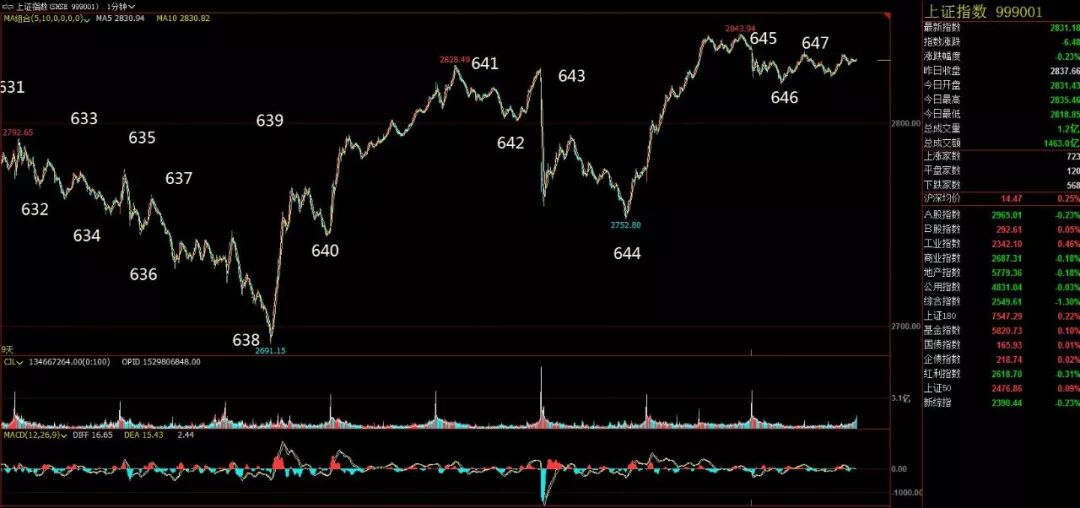 不过,需要注意的是,这个指数背离的技巧大部分用于日内做T,有时当出现指数背离之后也会引发几天的调整,但那更多的是因为大级别走势背驰所引发,而指数背离只是加速了背驰的到来而已。