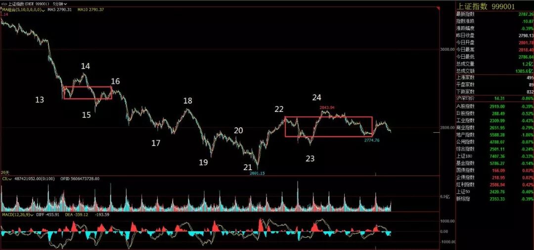 从3点开始算起,3-今天的高点,刚好形成5段趋势。唯一不太完美的是7之后的走势内部只有一段,但在5F级别上这个五段趋背还是很漂亮,这个分解本人还没想到,欣慰的是有人提醒到了,必须给个赞!