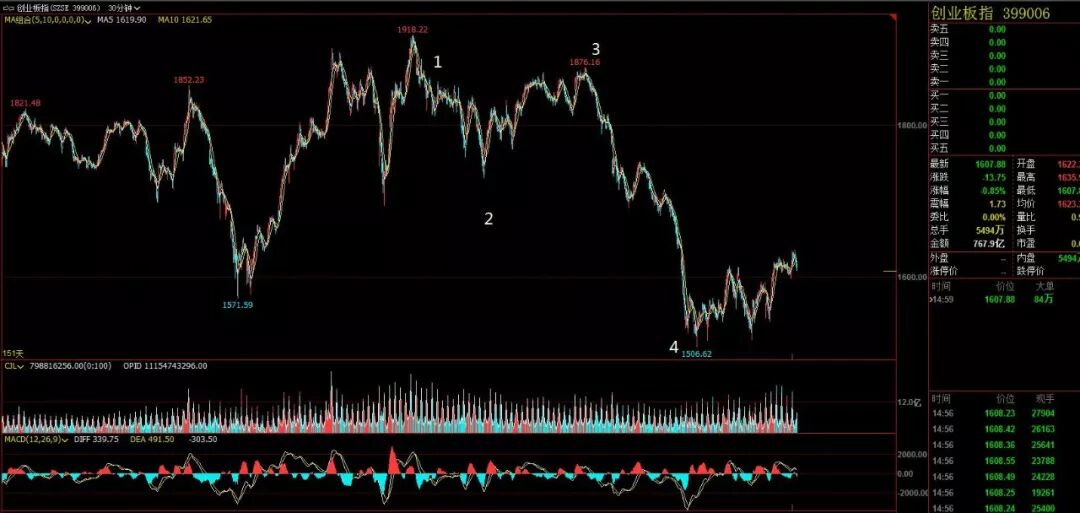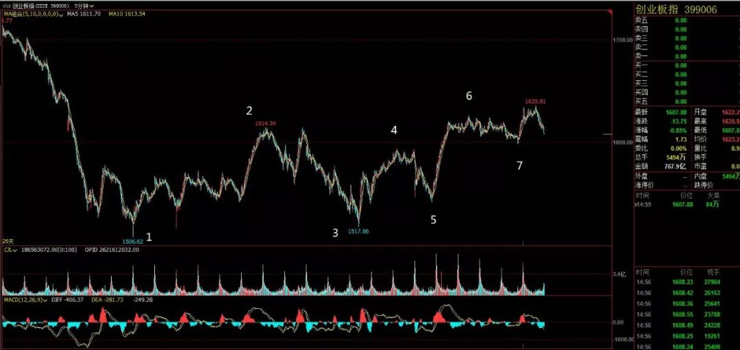 今天还有一位朋友提示,创业板今天的高点还可以看做是一个趋势背驰,在5F图上