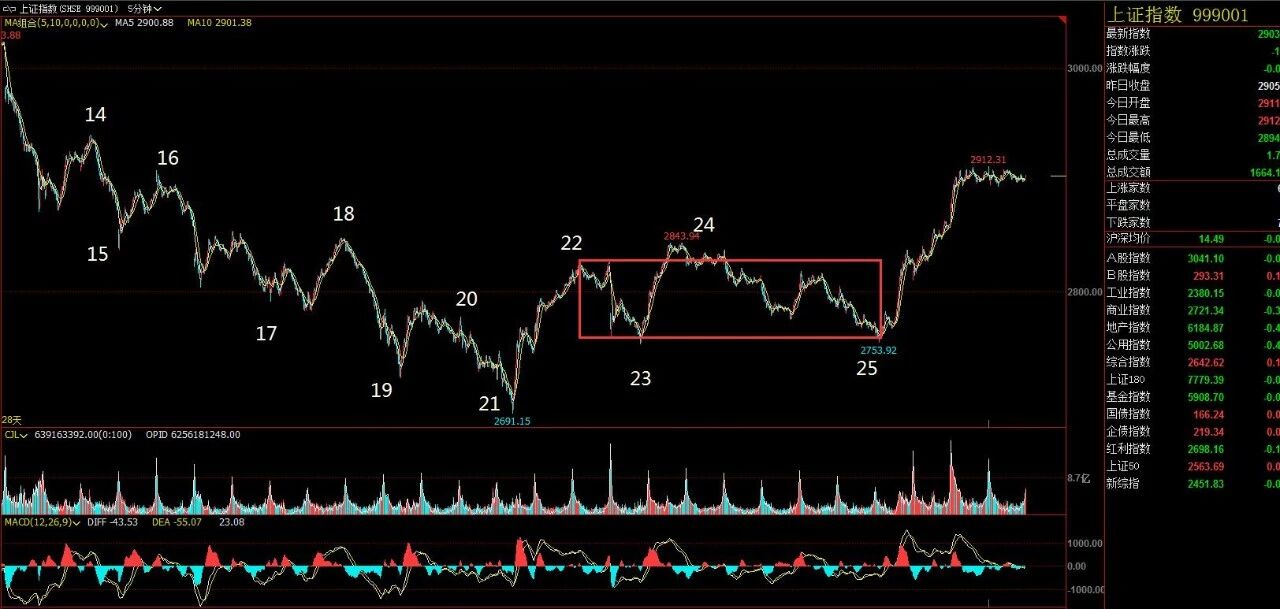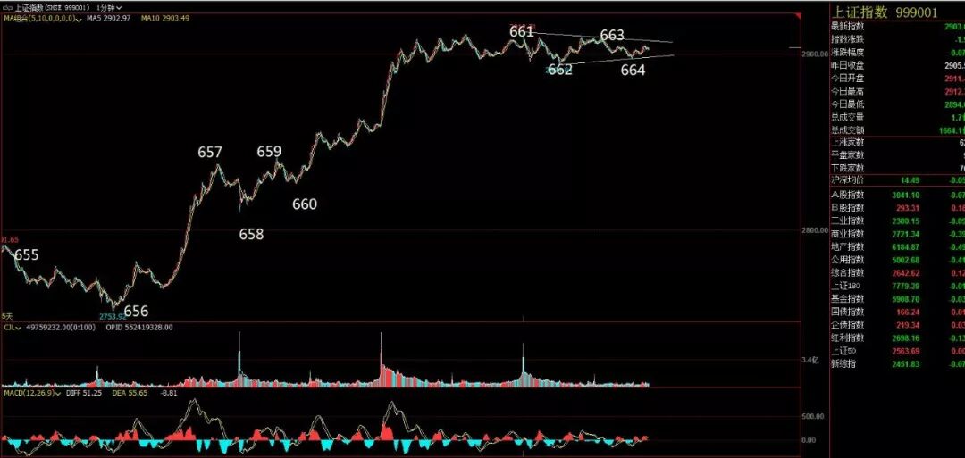 今天大盘也走出了一个收敛三角型,而且是在第二个中枢,这个规律明天大家一起来验证吧