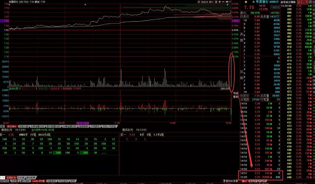 又是一个“老乡别跑”啊!说好的几百亿资金增仓呢?最后认真看了下,确实增仓了,但只是在尾盘集合竞价时,例如: