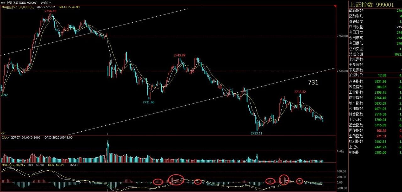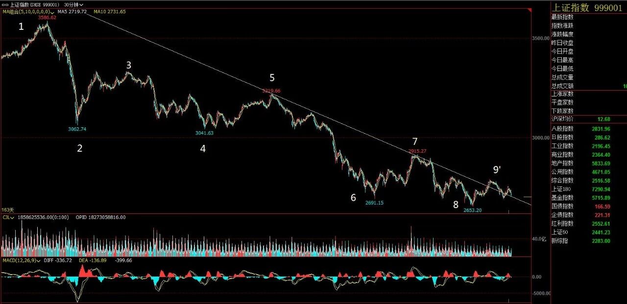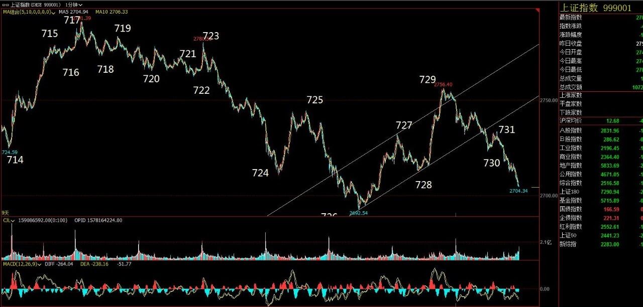 729下来的1F走势背驰出现,出现时的位置是否跌破2692点,如果跌破,以2791点为下跌5F走势的开始。