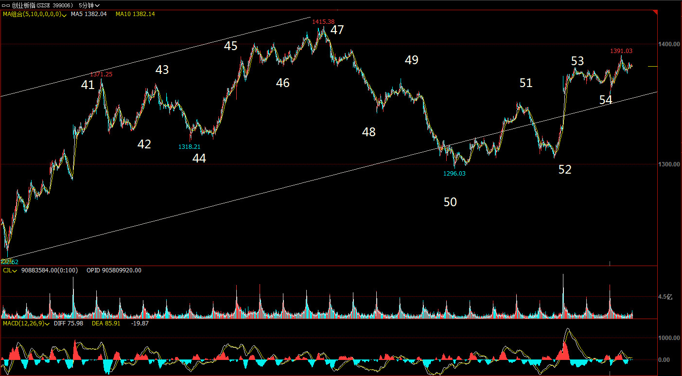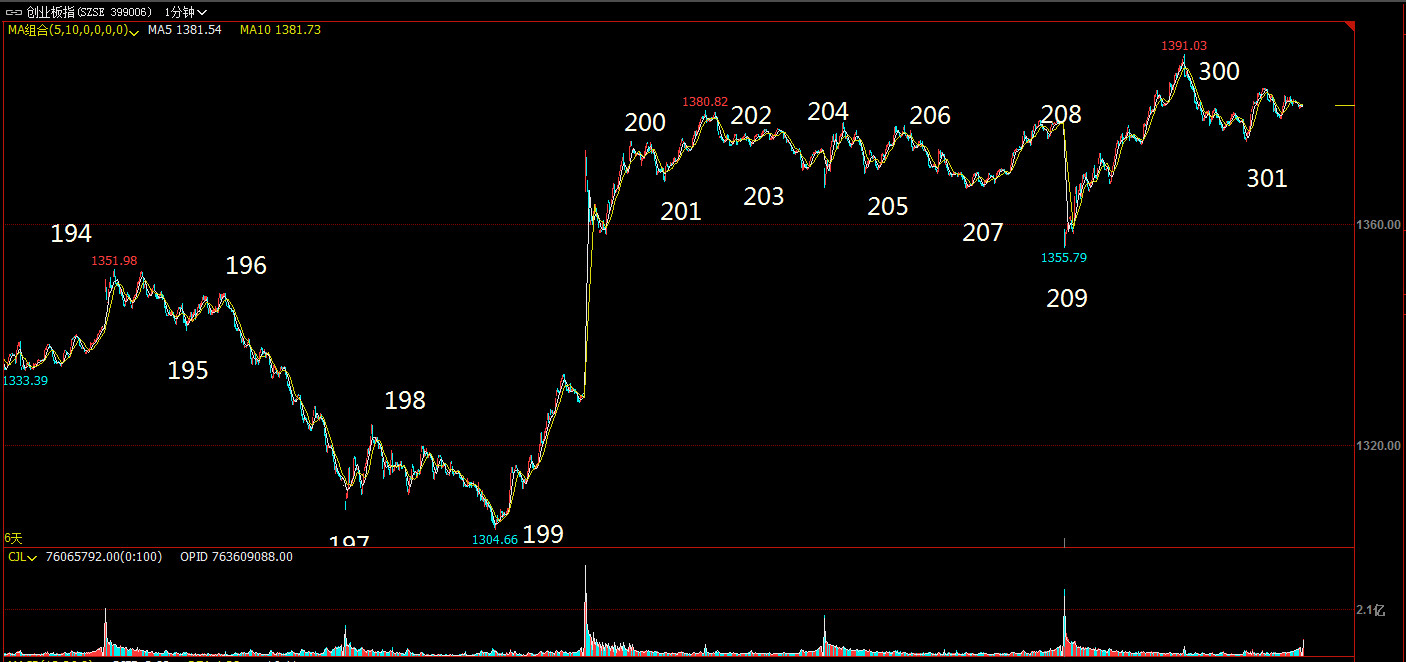 创业板:创业板依旧比主板强,5分钟上顶出了背驰段
