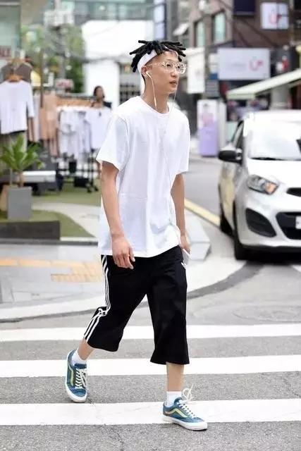 长版的白T加上比较长一点的运动裤,长+长的搭配,穿起来其实可以在视觉上看起来更高一些,搭配个有型的球鞋就很潮流运动。