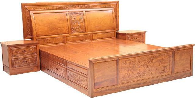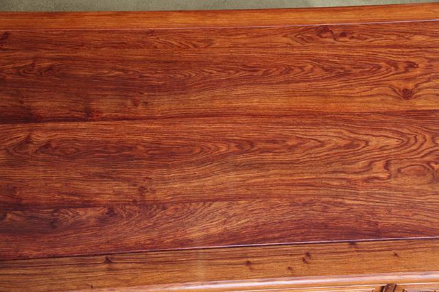 二、看木纹:缅甸花梨结构细密,鬃眼细长,木纹立体感强,特别是它的虎皮纹和山峰纹,富于变幻很是漂亮,不用上漆,只需打腊即可光亮如新;而很多厂家用的花梨木木质疏松,花纹发虚,需借助上漆来遮掩木材的鬃孔。