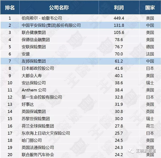 全世界哪些保险公司最会赚钱?巴菲特的保险公司排名第一