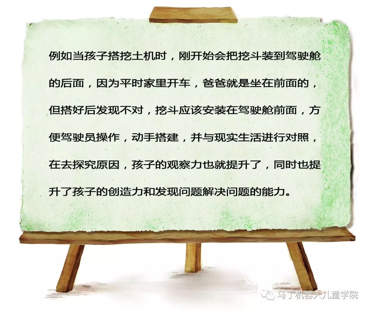 玩乐高还可以培养孩子的观察力和专注力,孩子再搭建一辆车的时候,原来可以只知道车轮是圆的,但是当自己动手搭的时候他才发现轮子是由轴毂和轮胎组成。