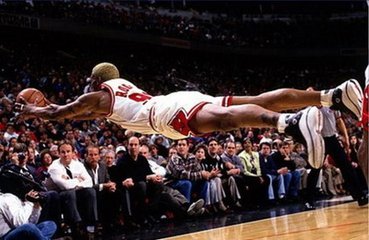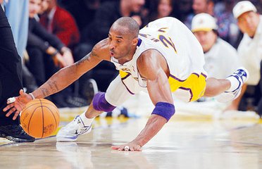 上面这球差点崴脚,还有更多科比在比赛中飞身救球的事例