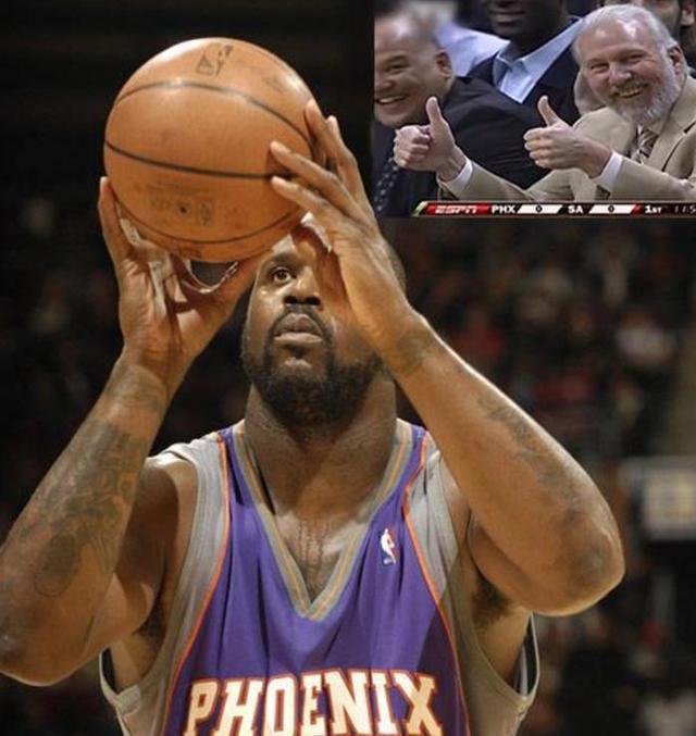 奥尼尔生涯最恨的就是发明砍鲨战术的老尼尔森和用的最好的波波维奇老爷子。老爷子曾经最快使用砍鲨战术是在开场5秒的时候就让奥尼尔罚球。奥尼尔当时一脸茫然,根本不知道什么情况。然后看看马刺教练席的波波维奇,老爷子竖起两个大拇指在那里对着奥尼尔奸笑。奥胖心都碎了,我要打篮球,你却一直让我罚球。奥尼尔都快被波波维奇老爷子的砍鲨战术搞出罚球恐惧症了。一想到罚球,奥胖脑海里面想到的肯定是这个机灵的老头。