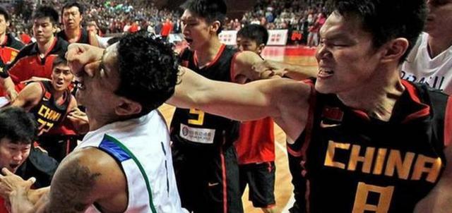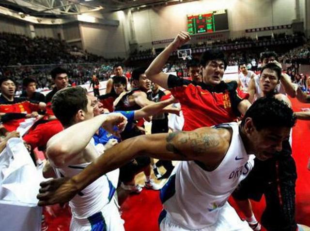 跟中国篮球队打球太危险!朱芳雨打到对手脑震荡,刘玉栋拿椅子砸