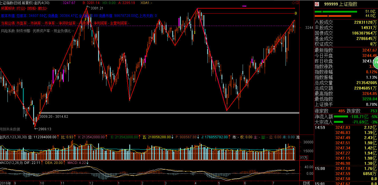今天大盘收盘价3247.67点,微涨0.12%,全靠银行股护盘,不然可能就跳水了。银行股早盘冲高,尾盘拉起,把大盘呵护的很好。