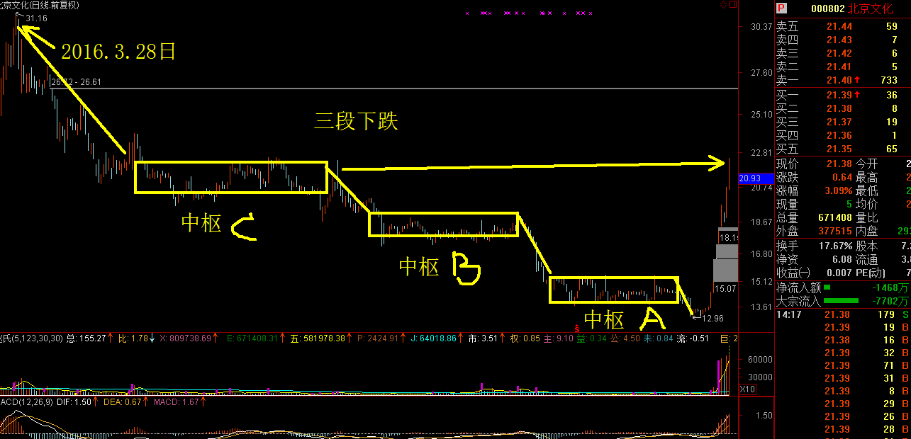 虽然北京文化和方大炭素不是一个版块,不是一个行业,但是套路都是一样,只是涨多少而已,卖出操作的方法是一样的。