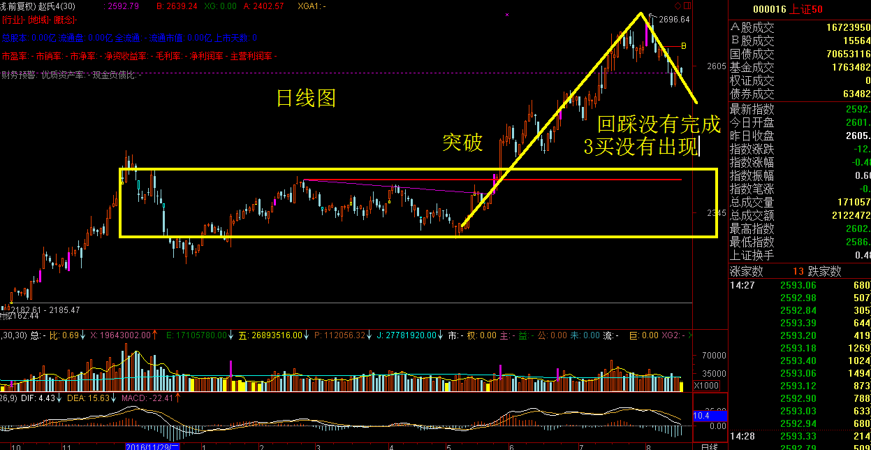 2、上证50日线图:突破回踩中,缠论3买没有出现