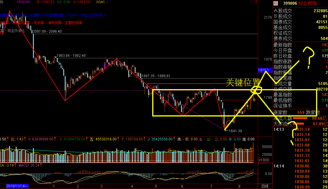 创业板到了中枢1711-1840突破位置,能否完成突破不知道,但是成功突破是小概率事件,大盘突破了5次未果,创业板难道就会2次就突破?无论后面结果怎么样,目前的优选策略是减仓。如果你手里的个股也是面临这样的突破位置,优选策略也是先减仓再说。