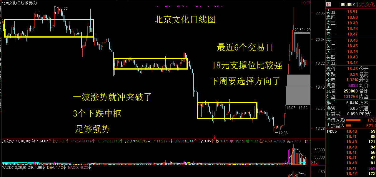 从周一至周五,咱们的练手策略都是18元以下加仓,18.5元之上减仓,本周有3天此类机会,如果能抓到一回就是一次非常成功的练手了。如果想盘中得知北京文化操作建议,在投顾大师吾股丰登观点里。