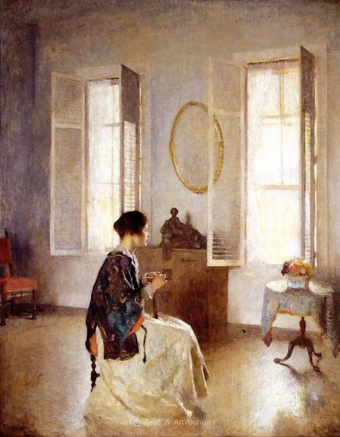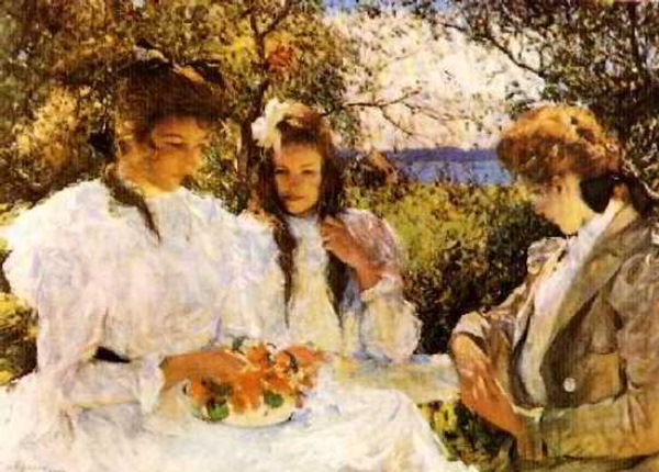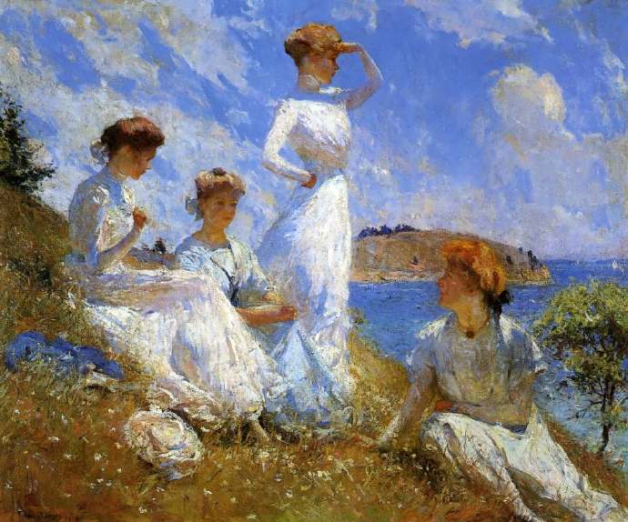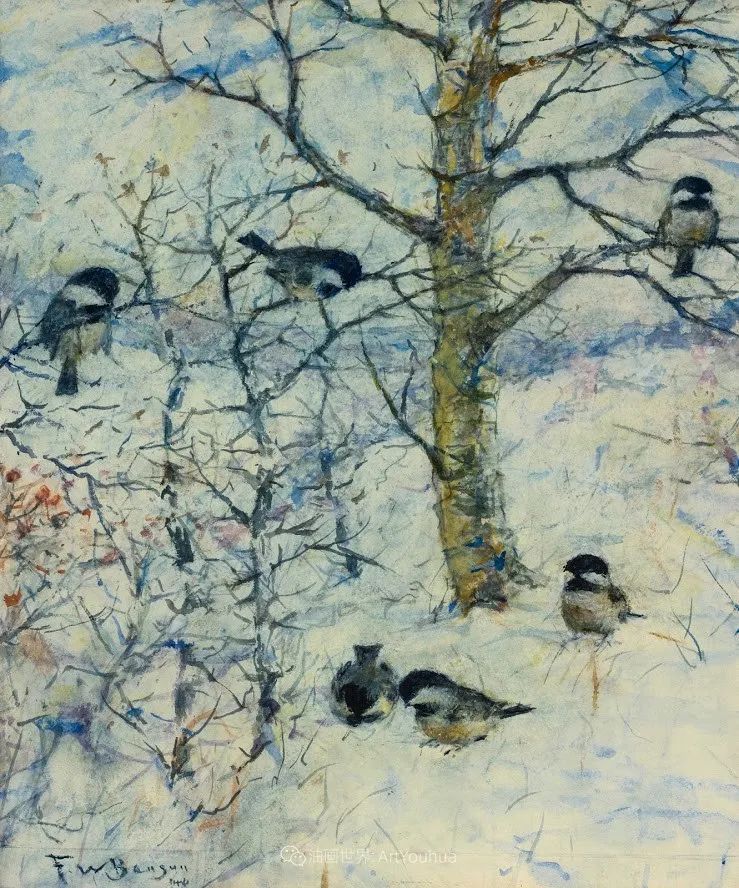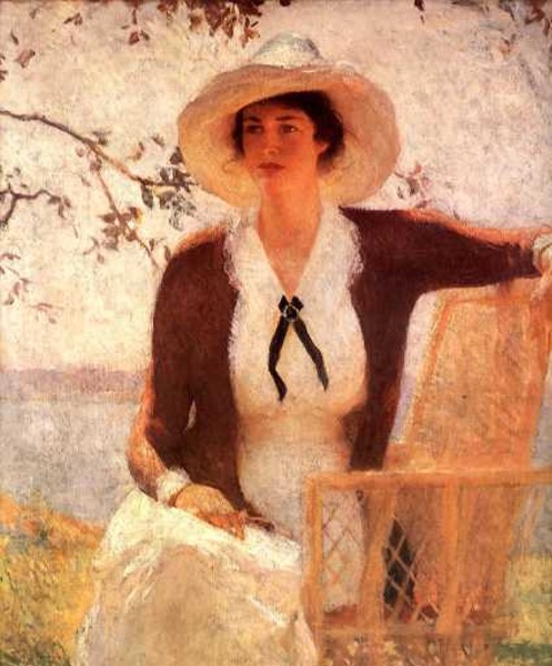 弗兰克·韦斯顿本森 ,经常被称为弗兰克·W·本森 (1862年3月24日- 1951年11月15日)是来自美国马萨诸塞州塞勒姆,他的写实肖像, 美国印象派画,水彩画和铜版画着称的美国艺术家。 他开始了他的职业生涯画的肖像杰出的家庭和美国国会图书馆的壁画。 一些他最有名的画作( 埃莉诺夏天 , 罗得岛设计学院博物馆 , 波士顿美术博物馆 )描述他的女儿在室外Benson的伍斯特暑假回家,农场,上岛的北部避风港,缅因 。 他还制作了大量的油,洗净,水彩画和铜版画的野禽和景观。(图文转自网络)