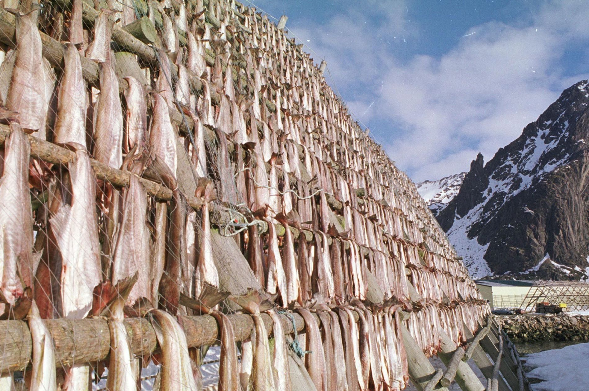 这是挪威的经典美食,尤其是在Vesterålen和Lofoten群岛周围。这是一种无盐的风干鱼,通常选用鳕鱼。