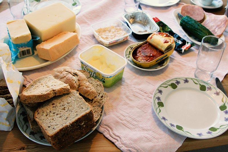 传统挪威早餐通常包括带有各种冷盘、果酱、奶酪或果酱的三明治。大多数挪威人早上会喝咖啡,有些人还会喝一杯牛奶或果汁。