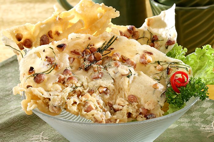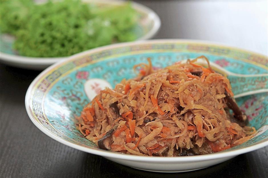 这其实也是一种土生华人发明的娘惹沙拉,里面除了鱿鱼外,还有胡萝卜、洋葱、蘑菇和猪肉等。拌鱿鱼在节日期间特别受欢迎,尤其是在农历新年。
