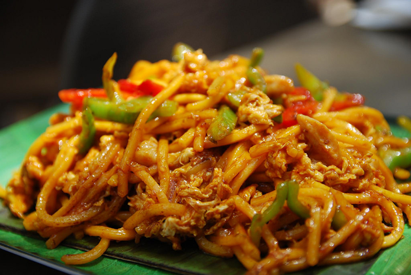 这是一道印度穆斯林食物,由黄面条、牛肉或鸡肉、虾、蔬菜、鸡蛋和酱油组成,再撒上一点辣椒,让人无法抗拒。