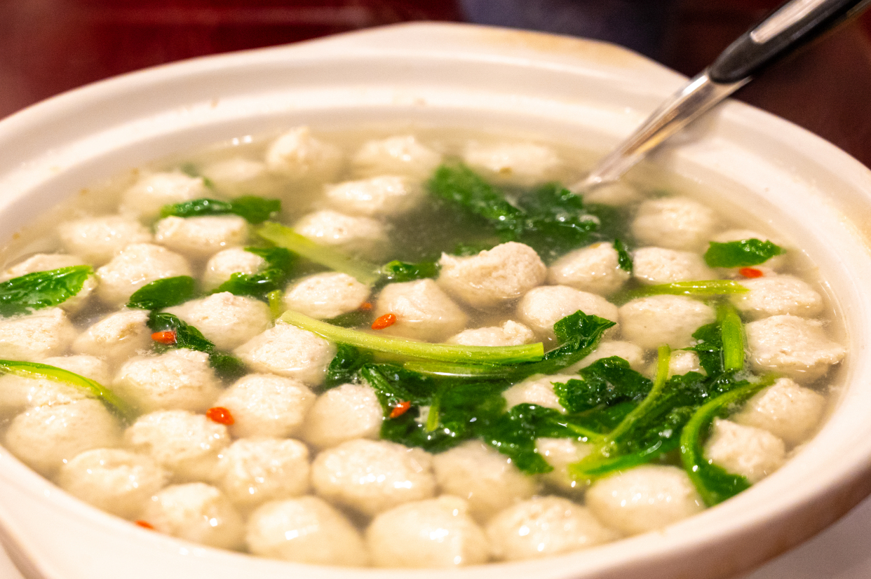 鲅鱼丸子也是备受大家欢迎的一道美食,用鲅鱼、精瘦肉及香菜末为原料制作而成,我们吃的这道鲅鱼丸子还加了小白菜,两者搭配起来,具有很好的促进消化的功效。