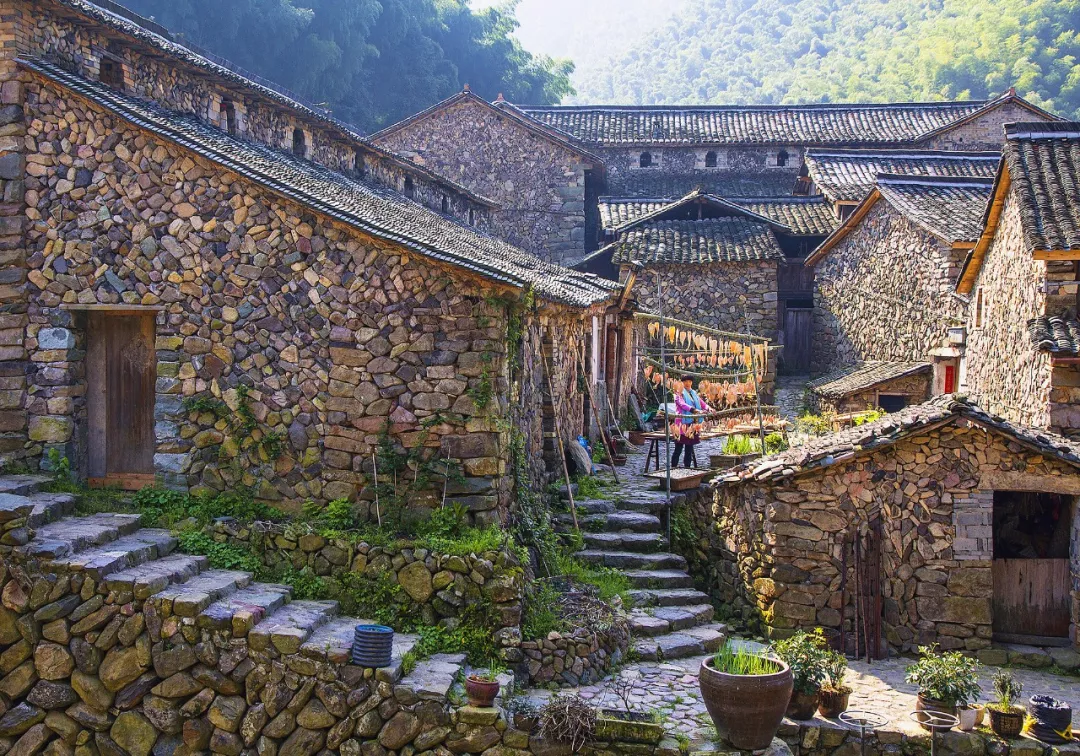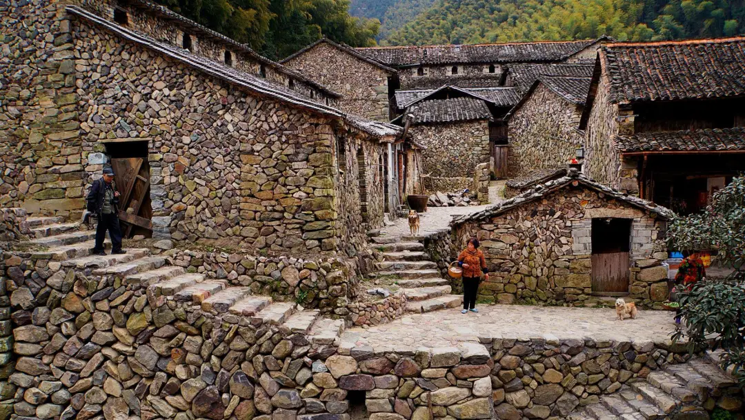 岩下村位于 丽水市缙云县,又被称作“石头村”,全村房屋、路面、台阶、桥梁等都是清一色用石头建成的。村里现存200余幢石屋,依山势而建,墙体多为山石垒筑,全村如同一个浑然天成的石头世界!