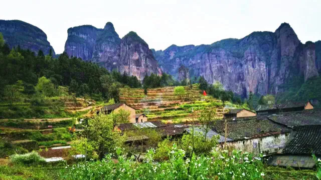攀上村南的公盂背,美景可尽收眼底. 公盂又被称为台州的香格里拉,足见她的唯美。村庄没有一息喧嚣之音。见到的画面,土坯,四合院,袅袅炊烟,梯田,老牛,耕作的人们,黄狗,老人...公盂景区以巍巍著称,地形构造呈多级梯状,海拔为1200米左右,整个公盂巍峨鼎立,气势峥嵘,山崖连着山崖,横亘无际,各峰离立,自为一体,石林崖壁,各有风采。