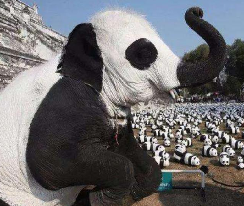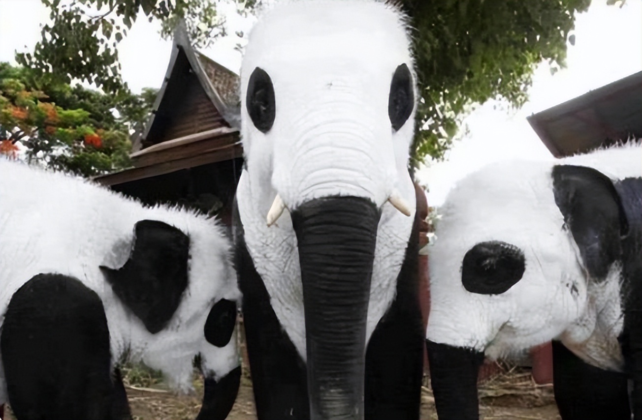一时间大街小巷上的猫猫狗狗、甚至老虎大象都成了“熊猫色”。