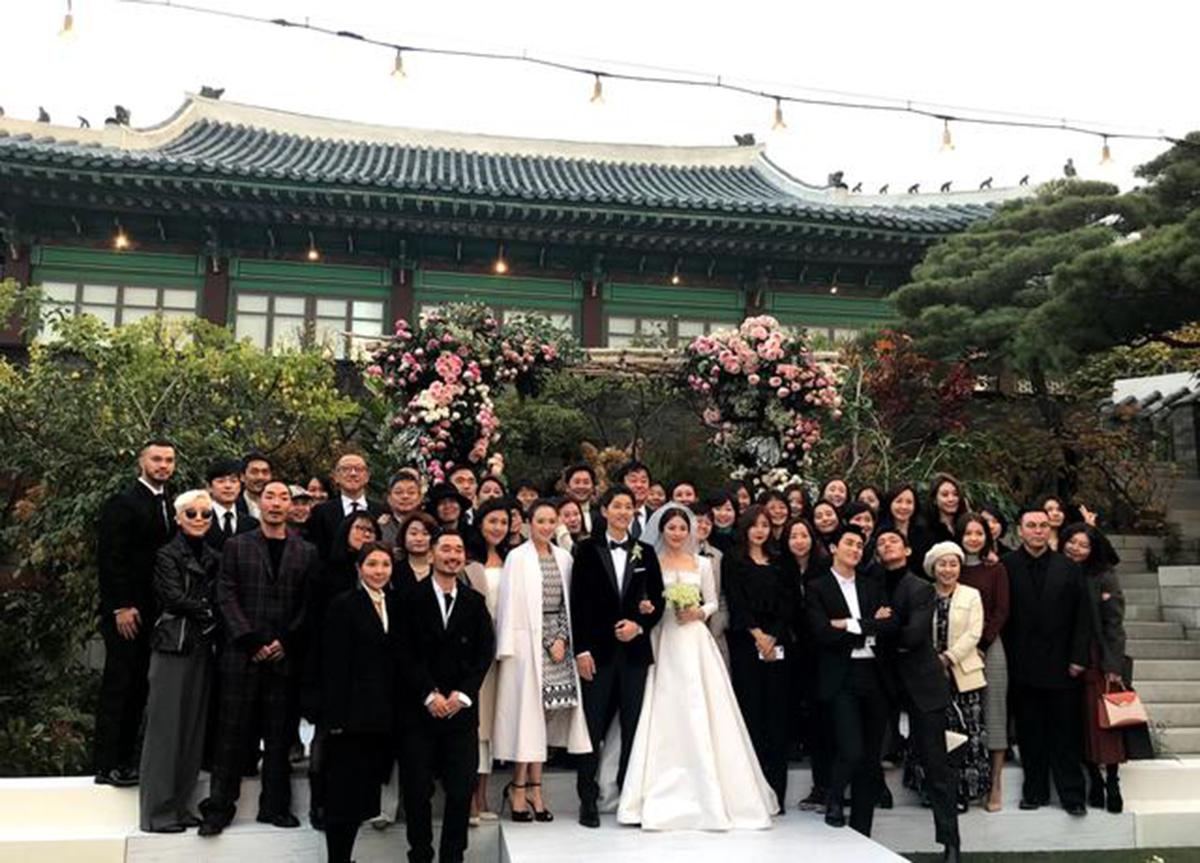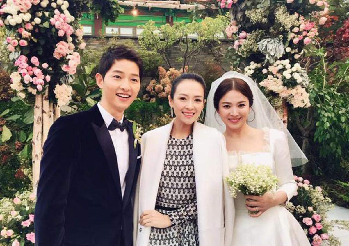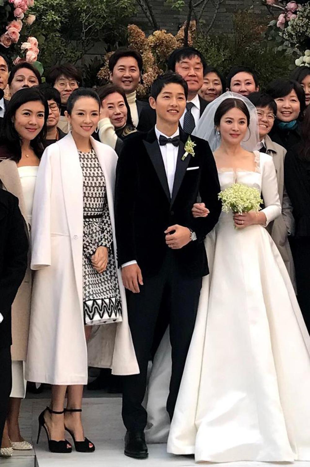 从照片来看,章子怡身穿白色长款大衣,站在宋仲基旁边,与新娘有的一拼。因为章子怡和新娘的衣服撞色,再加上其他人身穿黑色礼服,一眼望去最显眼的就是章子怡和新娘。